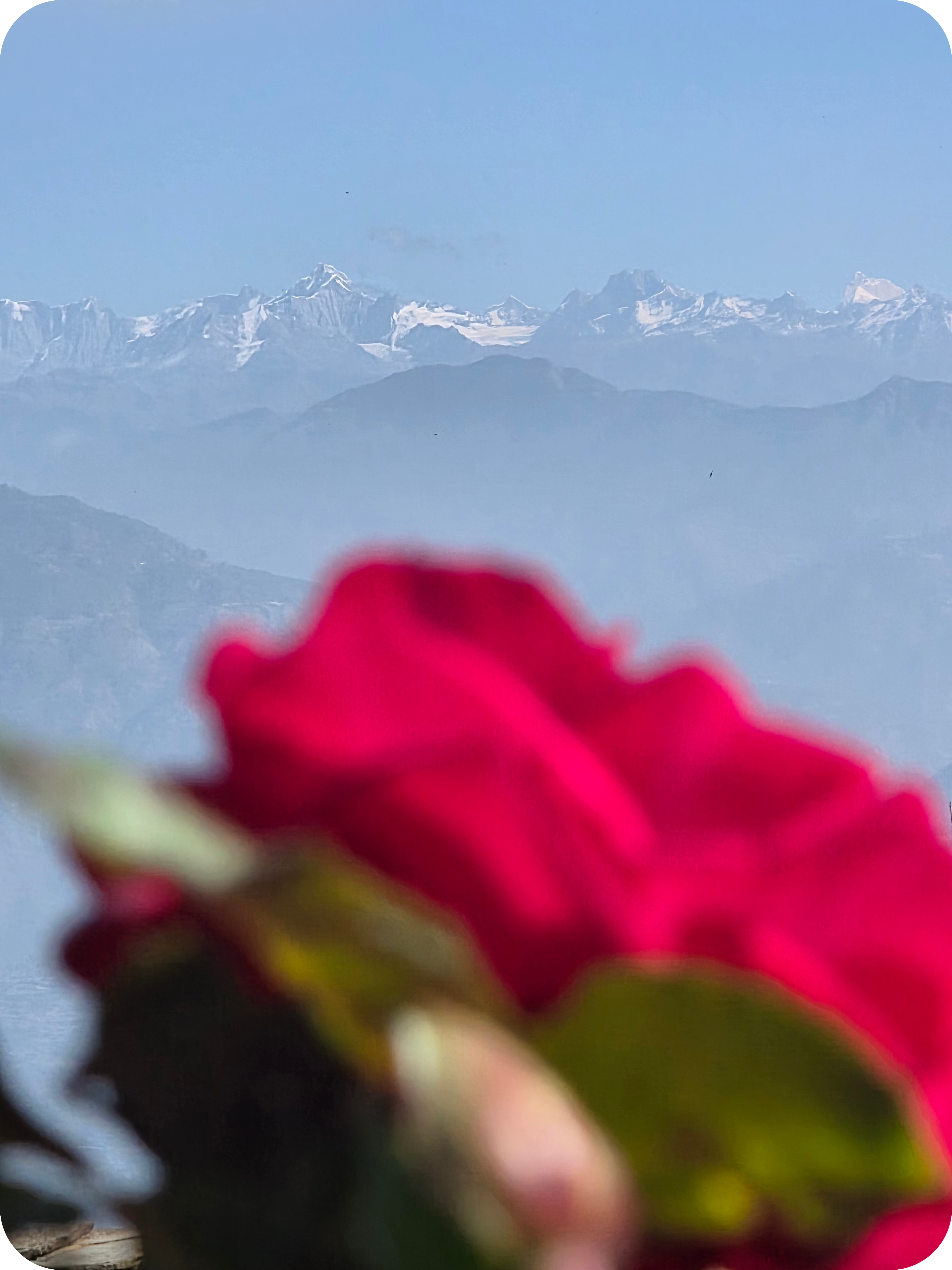 During our spiritual practices in the Yoga Shala, you’ll enjoy a stunning view of the mountains.I’ve felt firsthand how calming and grounding this view can be. It helps you focus deeply on yourself, supported by the ancient wisdom of the Himalayas.